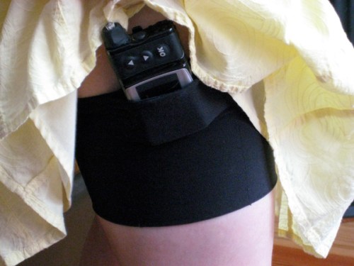 I’ve been told it’s going to be comfortably hot, which would usually bring out all the skirts, however, when I got hooked up to this pump thing, I didn’t really take into account how I was going to wear it with a skirt. I’ve gotten comfortable with it being clipped onto the waistband of my jeans, but a skirt’s a whole other story. I like to see my curves when wearing skirts, not a big bulge sticking out at the side! I do have an Animas Thigh Thingy that’s made out of spandex and that I purchased when I first got the pump, thinking it would be good for running and sleeping, but turns out it wasn’t really good for either … the “one-size fits all” was a little snug. I got the thighs of a speed skater! And it’s not good for my skirts either, because I got it in black – totally see through under light coloured skirts!