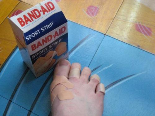 So my comfortable hiking shoes stayed in the closet and out came my so-called “good for walking” Hush Puppies. Lies, lies, lies! By day 2 of the trip, my right foot was cut up to pieces from the leather rubbing against my skin (oh how I longed for my Body Glide, which was stored in the bike room closet at home, not in my suitcase. Lot of good it did me there :(). By day 3, I was starting to feel a bruise forming on the top of my left foot, right where the Mary Jane strap sat. By day 4, there was a full on bruise. We were walking through Brooklyn (fell in LOVE with Brooklyn) and maybe 10 steps off the subway I was looking around for a shoe store. My foot was in excruciating pain, it didn’t matter if I loosened the strap, or if I walked with a limp, the pain was not going away. So, we stopped in a shoe store to see if I could find something a little more comfortable … by this time my feet were so bandaged up, I was pretty embarrassed taking the shoes off to try on another pair. But my feet wouldn’t allow much wallowing, they wanted a new pair of shoes, and they found a pair. We walked out of the store and after just a few steps, I looked over at Mario with the biggest smile on my face. “Freedom,” I sighed. “My feet have been liberated!”