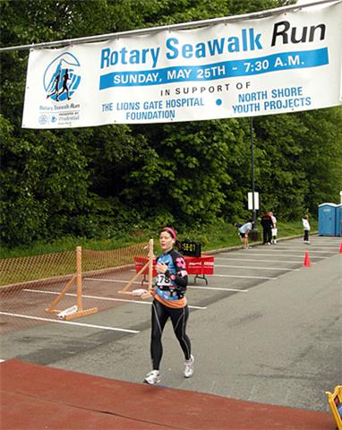 My energy was back. I was in this race. I surged forward, I found my mouse, I passed my mouse! And with about 700 metres left to go, my shoulders dropped down, my abs clenched, and my legs sped up. You’re in the home stretch now baby! I could see Mario and his camera standing just past the finish line. I thought of pulling down my shirts, making them look all pretty like for the picture, I thought of showing off my pearly whites, I thought of correcting my form, but then, with another female runner just ahead me, my competitive juices kicked back in. Ahhh, screw it, I thought, speed was way more important! I beat her 😀