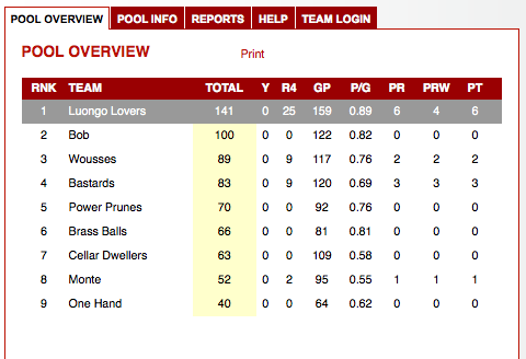 Look at that! I’m 41 points above the next team – and Team Bob was the only other gal of the pool! Real Man THAT!