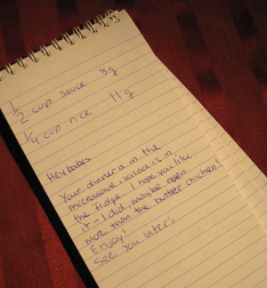 Yeah, Mario’s pretty good at the notes … he sometimes sticks them in my lunchbox, which is always fun to find!