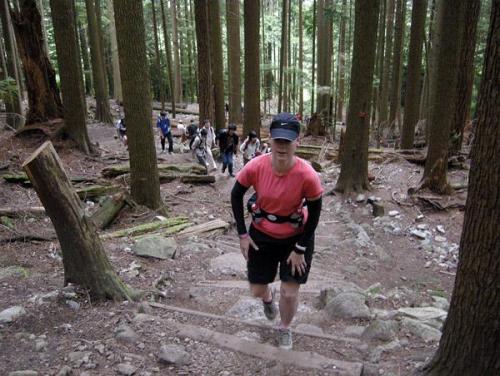 When Mario and I went to bed last night we were undecided on how we would celebrate Canada’s birthday. Do I go for a solo recovery run (which I was supposed to do)? Do we go for a ride? Or, do we head up to the Grind? When we woke up, this morning, the weather decided it for us. It was grey and drizzly, perfect Grouse Grind weather.