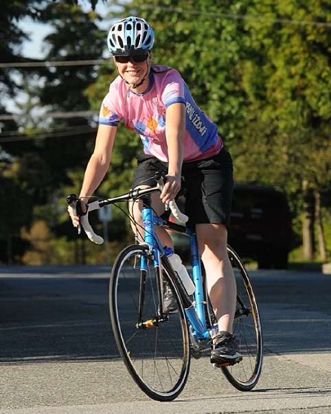 They didn’t have my bike, but they did have the model below mine, which helped me figure out the sizing. Apparently, I’m a tall, who knew? Although, the guy helping us told me not to get too excited about my new “tall” status, as Felt’s tall is more like the Starbucks tall – not so tall at all! Mario liked the shiny black and pink colour of the model I was trying out, and it was nice, but it wasn’t the colour I wanted, nor the bike I wanted. If I’m upgrading, I want a full carbon-fibre upgrade, thank you very much. They told me they could order my bike in, which, I kid you not, had the effect of butterflies swooping through my belly. Now, I’ve just got to come to terms with selling my tried and true Zing and her little fold-up buddy Storm – we don’t exactly have room for me to have three bikes in the condo.