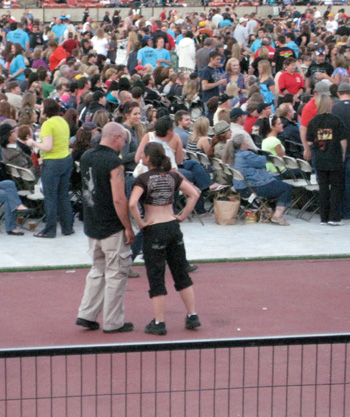 On the way to the concert, via the LRT, I thought for sure I was gonna be getting a Tom Jones like concert. It seemed as though every second woman on the train had taken a rewind pill jet setting them back to the ’80s with metallic tights, sky high bangs, low-cut tops, and even one trying to bring back the half top! I thought for sure they’d be throwing their underwear at the stage by the end of the night, but I’m guessing they were probably too tanked by then to have the energy to do so, let alone lift their heads up from the toilet bowls!