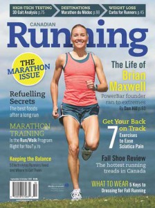 But the other day when I was stocking up on gels and electrolytes at the Running Room, I noticed Canadian Running front and centre at the cash desk. Normally I wouldn’t have even given this magazine a second glance, but when I saw masters runner and fellow blogger Marilyn Arsenault on the cover, I impulsively threw it into the loot. Big mistake.