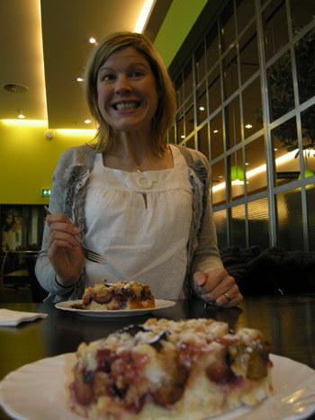 When we got to the Berlin airport, a really small airport, we stood in a line to check-in for the first leg of the trip to Amsterdam. It was a pretty long line as there was only one clerk when we arrived and two back-to-back flights going out. And after about 45 minutes of standing in the line, we were finally the next ones to go through (by this time there were three clerks checking people in). After the clerk waved us in, she asked if we were on the 11:30 flight, and when we told her that no we were on the next one, she gave us a dirty look and left her posting to call over everyone who was on the 11:30 flight. Mario and I were a little confused as she didn’t say a word to us, she just up and left. When she came back, still giving us a dirty look, she impatiently told us to move back into the line. Mario took it in stride, I got a little pissed off by her attitude, I mean, she was the one who waved us over, she didn’t specify that she only wanted those getting on the 11:30 flight, so what right did she have to give us a dirty look? But I didn’t say anything, I bit my tongue and diligently moved back into the line. However, when I saw a group of people who had stormed the line when the clerks started calling for the one flight, but who were on the same flight as we were, I could bite my tongue no longer, especially when one guy outright budged right in front of us. I mean, come on, we were all getting on the same flight, many of us had gotten there much earlier than others and waited much longer than that guy, who the hell was he to blatantly budge in front of the rest of us? Mario plastered a smile on his face and told me that if the budger’s seat was in front of ours we’d just kick it – a lot. That helped 😉