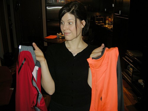That’s the downside of running 45 minutes away from where you live, you can’t just quickly jog back home if you forget something or make a silly mistake in your dressing attire. I try to be as prepared as I can, I always ask Mario what the weather’s supposed to be like, how cold it’s going to be, etc., etc.. But this morning when he told me it would be 5 degrees and light rain, my brain zeroed in on the “light” part of the equation. See, I’ve come to loathe my red jacket, yes it looks super cute, and it’s a great brand (Saucony) but the thing is while my jacket – and seemingly all the other running/cycling jackets – wick away sweat, they don’t breathe so the sweat gets locked inside the jacket, soaking me from neck to waist. And really, it’s kind of gross having a flood of sweat droplets escaping out of your sleeves! And there’s no taking it off midway, it’s got to stay on the entire run whether you’re heating up or not, because you and your clothes are soaked underneath. So yeah, I pretty much try to avoid this jacket at all costs.
