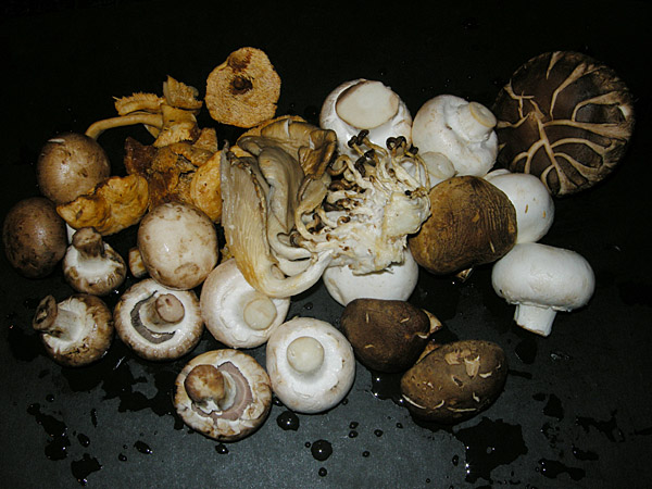 Our Saturday night dinners usually consist of chicken and pasta with olive oil and parmesan, baguette, greek salad, and a glass of red wine – perfect pre-run fuel – but tonight, we changed it up a bit. We got the pasta (ricotta and sundried tomato ravioli and ricotta and spinach ravioli), we had the wine, purchased a baguette, but instead of the salad, Little Miss Chefette over here, she cooked up an earthy mushroom soup!