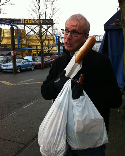 Mario and I headed over to Granville Island this afternoon to pick up a few items for dinner. For those of you who don’t live in the Vancouver area, Granville Island is like the West Coast version of the Rue Mouffetard. Located along the Seawall, it consists of a farmer’s market, shops, theatres, artist studios, music and more. And it is amazing. It doesn’t matter how many times I’ve been there (and I have been a lot) I find something new, I get taken in by the colours, and mesmerized by the fresh pastas and meats and fishes, and oh man, I’m having to wipe the drool from my chin at the first sight of tartelettes and baguettes.