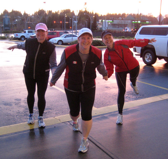 We only went out for 4 km, which should have been easy as hell, but combined with the aqua jogging and the granola bar overkill, I was dying. My stomach was lurching and my legs were sleeping. Carol was practically dragging Blaine and I to the finish. And yet, despite the mixed belly and fatigue, it was an awesome run. All three of us were so thrilled to be back together laughing and giggling in between the gasping and wheezing. Love my girls!