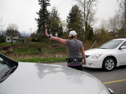 After about 30 or 40 minutes of waiting for the ambulance and Lori directing traffic (she’s a take charge kind of girl :D) we were back on the road. We decided to go back the way we came, get off the roads as quick as we could – I think our best pace was like 5:05!