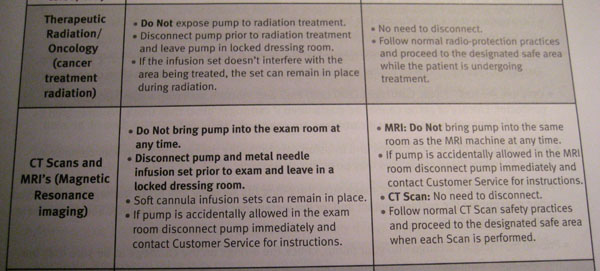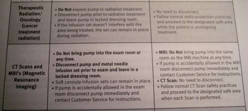 Sooooo, remember how about a month and a half ago I had a bone scan done on my inept ankles? And how my body was pumped full of nuclear smurf juice? And how there were all these signs about what you could and couldn’t do post poison? Well, nothing in there said I couldn’t bring my insulin pump in with me. So imagine my surprise when I was flipping through the pump guidebook on the weekend trying to figure out how to sync my pump with my metre and came across the caution page (a page I will admit I may have neglected to read the last pump around) and learned I kind of, sort of, maybe should NOT have had my pump on during the MRI, and in fact, I should NOT have even taken the pump into the room with me … maybe that’s why I was having blood sugars issues for awhile there? Oops … good thing I got a brand spanking new pump!