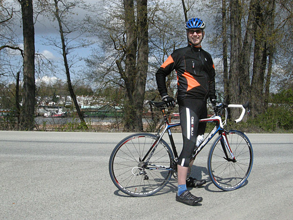 When I first started down this cycling path, it was on a Dahan fold-up bike, a great little bike with 24 gears, three rings, did everything a “real” road bike does, even took me as far as Horseshoe Bay one day, which was 80 km of hill hell, but my Dahan, she got me there. The only difference was she folded up; apparently that wasn’t couth with the cycling snobs. So, not long after purchasing my Dahan, I upgraded to my Kona Zing. And still no waves. I then bought a pair of butt accentuating (my butt does NOT need anymore accentuating) padded cycling shorts. Nothing. I got the cyclist sunglasses, had the cycling socks, the jersey, the arm warmers, the jacket, everything but the shoes. Today, I had those shoes.