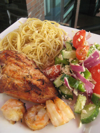 And the final food prep of the day, my traditional pre-race/pre-Sunday run dinner (red wine not shown):