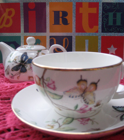 Our walk came to a close with a surprise birthday gift (FOR ME!) of a beautifully dainty, for-one (me!) tea pot/cup printed with butterflies. Ever since my last trip to Europe, where I spent almost every morning of our trip drinking tea out of dainty teacups, I have wanted a dainty teacup of my own. And when I went to my favourite ironchickie’s birthday tea party last month, my eyes practically glowed a bright green as I ogled her teacup collection which was passed down to her by her grandma. Now, thanks to my favourite ironchickie, I have the start of my own collection.