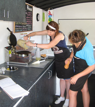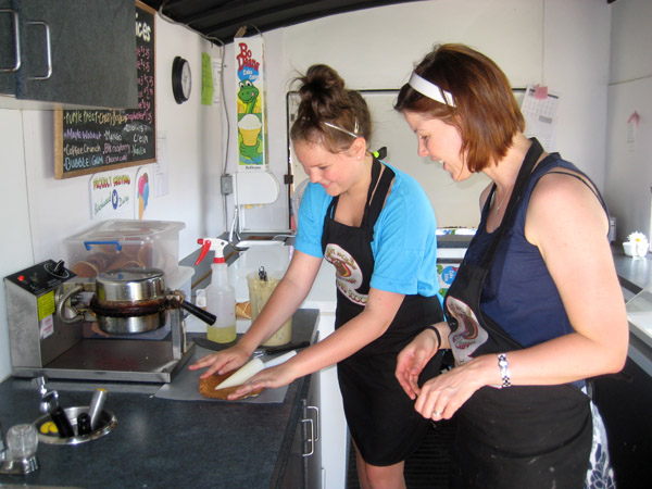 Sami teaching me how to make waffle cones.