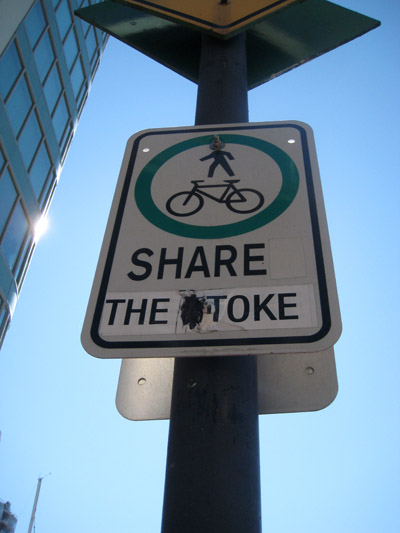 And then this morning a group of girlfriends and I were going blueberry picking (more on that tomorrow) so the only time for a long run was yesterday morning. And not even 24 hours after coming across this brilliantly funny website which had all these pictures of smart ass responses to well-meaning signs, I was seeing them everywhere. Along the Seawall, a route I’ve been pounding for months, I came across not one, but two funny signs of my own.