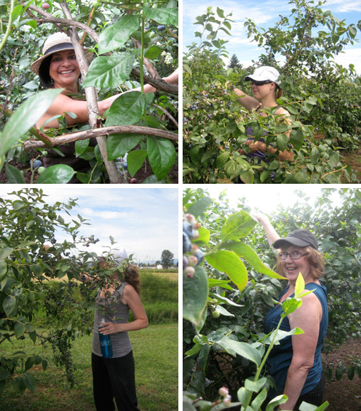 This time around though, while I was still operating on the one berry for the bucket, one for the belly method (organic, no spray berries = big berry bellly) I was NOT padding the bucket, and I WAS seeking out the most delectable berries. And it wasn’t like work at all, not even when my head nearly got decapitated by two intertwining berry branches, or when the berry blew up in my hand, or even when the icky spider went crawling down my sweaty sports bra … I may have let out a high-pitched screach, but I did NOT run away crying. A perfect girls get together.