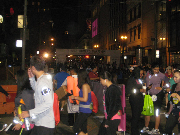 I tried going fast, I really, really did, but there was no getting around these people. Most of them were Team in Training walkers (it was like running through a sea of purple) and so I tried not to get annoyed or frustrated with them in the beginning, I mean they were out there for a great cause and all, but after awhile, it was just bloody ridiculous. My body may or may not have barged squeezed through their ranks a few times.