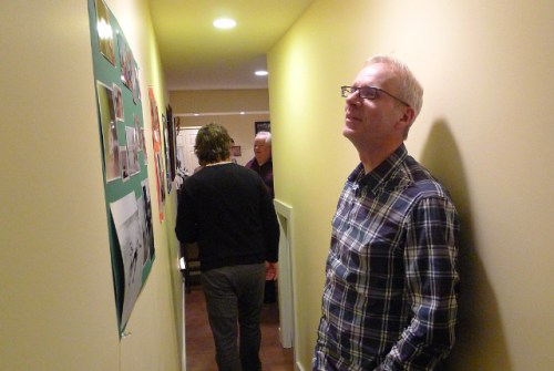 Checking out the Wall o’ Photos, of which I had to tear our loft apart to find, as well as enlist his mom and sister from the Onterrible to mail some oldies out. Totally worth it!
