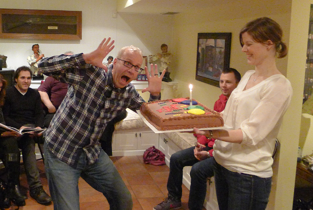 On Saturday evening, under the guise that my parents were hosting an appetizer get together of friends and family (which they often do to test out new recipes), I got him to his party. And it’s a good thing the room was full of photographers as I forgot my camera at home. D-oh! (Thanks for the pics EvanMan!)
