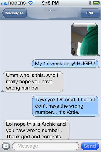 I sincerely apologize for causing your heart to unsafely palpitate, your brow to drip with fearful sweat, and your hands and lips to shake as though they were in the middle of a California-sized earthquake. I’m sure if I were a guy, and I got a random text from an unknown sender with the subject line My 17-week belly, and this picture attached:
