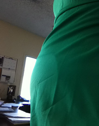 This afternoon I was engaged in an email conversation with a girlfriend of mine who has yet to see my oh-so-pregnant belly, and I was trying to describe to her the size of it. I equated it to the size of rancher, and then followed that up with predictions of being the size of a house in two or three months, and the size of an Aaron Spelling sized mansion by the end. She didn’t believe me. Shocking, I know! So, I figured I’d send her picture evidence.