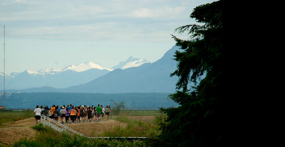 The route was an out-and-back, which I’m not generally a fan of, but along the dykes of the Steveston waterfront, it was freaking gorgeous! I had the water next to me, the mountains in front of me, and airplanes flying not so high above as they descended towards YVR.