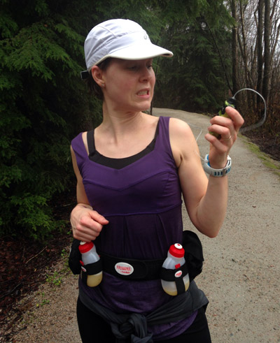 It seems Dear Diabetes is making a habit of getting in the way of my Sunday runs these days with her stupid hypoglycemic ways. So I thought yesterday I’d head it off before it had any chance to begin. I had a full banana, instead of half, 30 minutes before the run. I cut my basal insulin by 50 per cent starting 15 minutes before the run. Two seconds before the run, I chomped on two shot blocks. And instead of waiting 30 minutes into the run before fuelling up with my homemade sports drink, I started right off the hop. Surely that would make a difference.