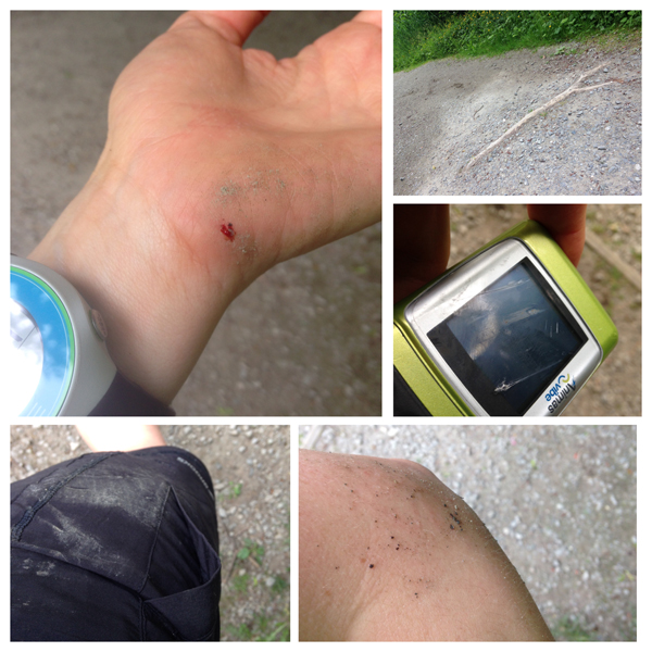 But yesterday, when that bloody jerkface of a tree trunk came at me, and I knew about a quarter of the way into the attack I was going down, I tucked my arm in, silently cursed the devil, and braced for the gravel rash to come. And what do you know, I came out of it alive; no broken bones (hello snowboarding 2003); pump was banged up but still working; no ripped clothes, only one tiny rip of the hand, a blood blister on the other hand, and a few minor scrapes on my elbow and hip. SUCCESS!!!