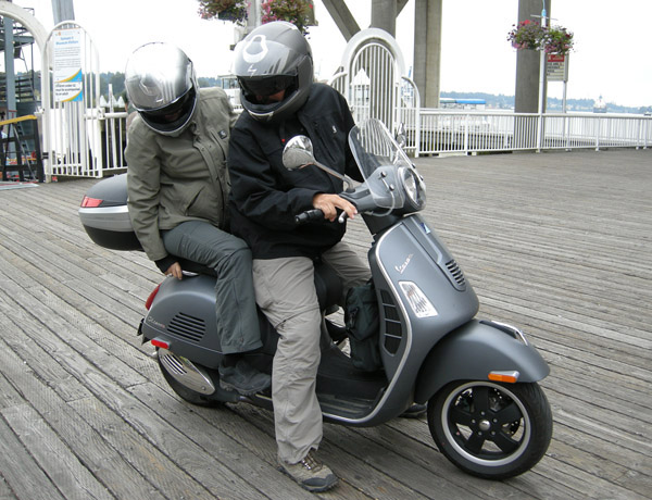 This weekend, our New York friends (who are more truck-driving nomads than New Yorkians these days) came into town for a quick lunch visit between loads. Rather than come in on their big rig, which admittedly would be a nightmare to park in our community, they spun in on their Vespa beauty. And instantly they became the object of my envy.