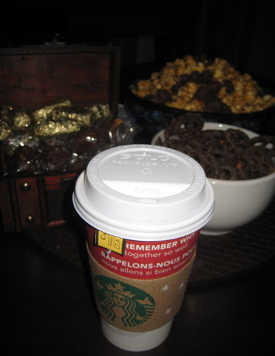 It seems Miss Enviable Abs knows the way to my heart and the way to taking my mind off the video camera trying to stare me right in the eye – load me up full of Starbucks tea and chocolates, and then quickly turn the camera on and hope I don’t notice.