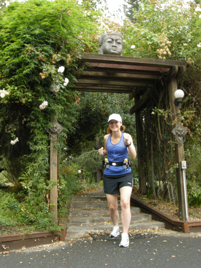 I started along that way, but stopped just short of the sign so I could snap a picture for proof. As I was putting the camera back, I caught a glimpse of a big, burly, don’t mess with me, scary looking creature that had an angry red head and was flapping its wings under the apple tree not 10 feet away from me. Uhm, okay, I thought, maybe that’s just a really large crow??? I craned my head up and holy crap there were like four more perched on the powerline directly above me. Oh crud! Those ain’t no crows, they’re freaking vultures, and they got hungry eyes! Eeeeeeeeeeeek!!! And off I was running the rolling hills route. There was no bloody way I was climbing a 16% grade hill, huffing and puffing, with vultures perched at the peak. Nope, wasn’t going to happen!