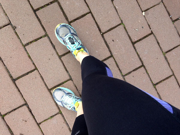 First, I was completely overdressed. Despite the webcam showing blue sky, I hadn’t forgotten that cold breeze of the hour earlier, and thought surely it couldn’t have warmed up that significantly. I was wrong. Dressed in two running shirts and knickers, I was completely overheating. I ended up taking off one shirt and tying it around my fuel belt. Still, my legs were on fire the entire distance.