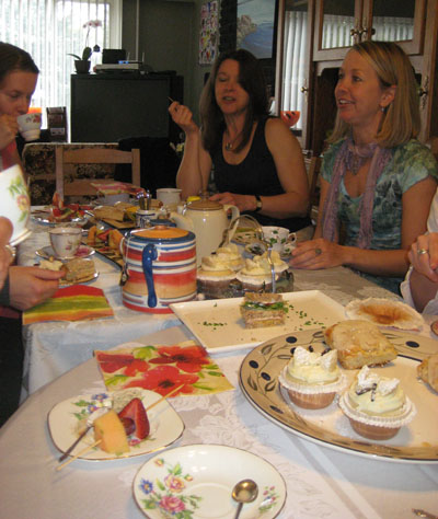 After the run I helped celebrate my favourite iron chickie’s birthday with a birthday party tea party. And my goodness, I do not know why us Canadian girls do not have more of these kind of parties … especially with a New Zealander doing all the baking 😉 This girl went all out in the baking realm with maple drizzled scones complete with maple cream; homemade lemon curd cupcakes with iron chickie designed butterflies; pumpernickel and smoked salmon with capers; finger sandwiches; and colourful fruit pot stickers! I’m pretty sure I ingested all the calories I burned on my run and then some! And the English black tea (of course it was English!) was served in beautiful, dainty tea cups passed down from her grandma.